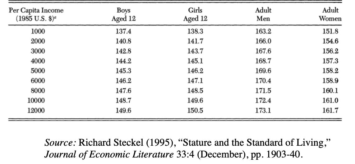 Steckel, Richard H. 2008. “Biological Measures of the Standard of Living.” Journal of Economic Perspectives 22 (1): 129–52 <https://www.aeaweb.org/articles?id=10.1257/jep.22.1.129>