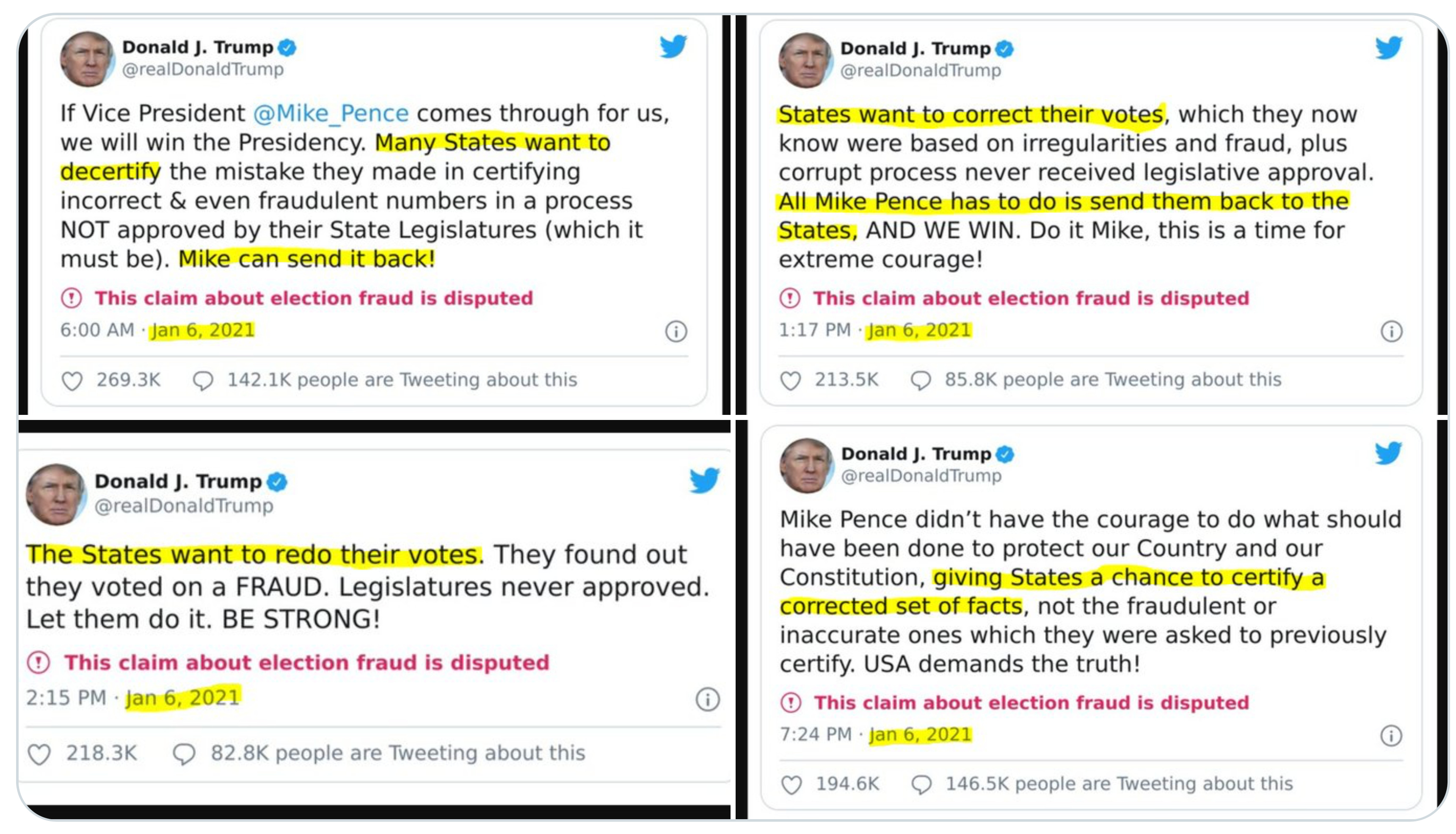 Treason consists of adhering to the enemies of the United States. We have many more than two witnesses to these tweets. The only question is that, when one has made oneself the chief enemy of the United States, are one’s actions and conspiracies than “adhering” to onesself?