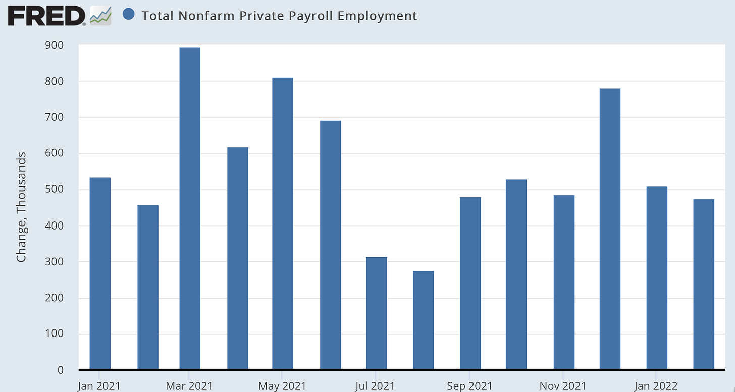 Ellen Ioanes: Understand the News: ‘The labor market added 678,000 jobs in February, driving the unemployment rate down to 3.8 percent from 4 percent in January, the lowest level since the start of the pandemic…. The strong employment numbers are a good sign for the labor market and reflect a rebound from the latest wave of Covid–19 infections due to the omicron variant — and post-pandemic recovery overall. But employment is not yet back to pre-pandemic levels, and many people need to negotiate child care and health concerns. The employment boom isn’t hitting everyone equally; the unemployment rate for Black women rose from 5.8 percent to 6.1 percent in February from the previous month. Their participation in the workforce also decreased by .2 percentage points last month. Nevertheless, the positive jobs numbers are part of the calculus that goes into the Federal Reserve’s decision to raise interest rates in an effort to combat inflation…. Fed Chair Jerome Powell said Thursday that “hindsight says we should have moved earlier” on rate increases…