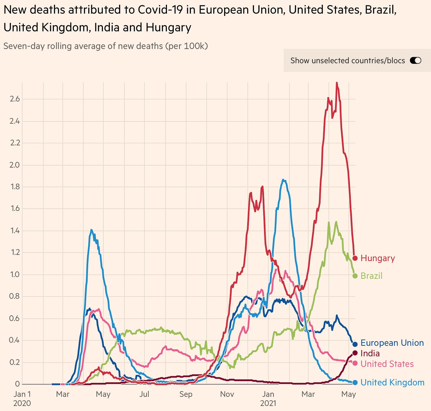 Axiothea: If so, note that India currently is at 200 reported deaths per million—say the true number is 1000, 0.1% of the population, and it is going to double before this wave is through. With a population of 1.4 billion, that would be 3 million dead by the time this wave ebbs…
