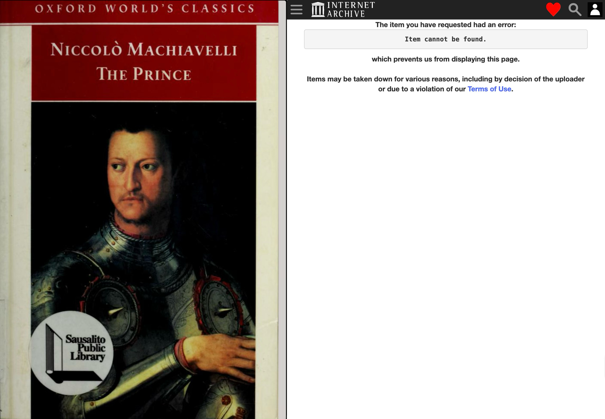 Yes. It did return a string of symbols beginning with “https://archive.org/”. But “historicalpoliti02machuoft” is not “niccolomachiavel00nicc”.