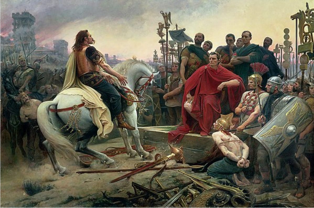 Your choice of an image "Vercingetorix Throws Down His Arms at the Feet of Julius Caesar, 1899, by Lionel Noel Royer" prepped me so that as I was reading your analysis, especially "But a strong state can also mobilize more power to protect non-élite individuals from roving bandits and the stationary bandits who are local notables" I kept on mentally repeating "Nasty, Brutus, and Short."