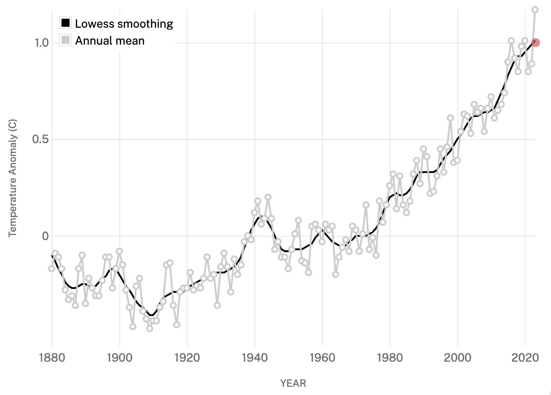 Gavin Schmidt… warned that the data could imply that a warming planet was already “fundamentally altering how the climate system operates”. The surprising heat in 2023 had “come out of the blue”, he said, and revealed that “an unprecedented knowledge gap” had opened up…. We have a shakier grasp of what lies ahead — which is worrying when it comes to forecasting drought and rainfall patterns that are already aggravating food shortages….