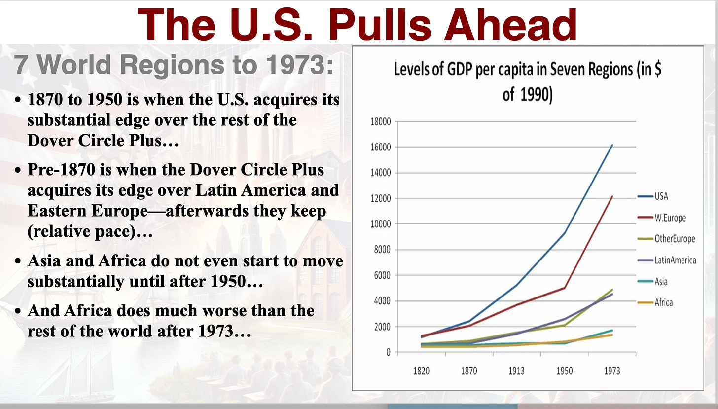 And America overtook and surpassed Britain in an astonishingly rapid relative global economic shift. A large number of factors contributed to this shift: