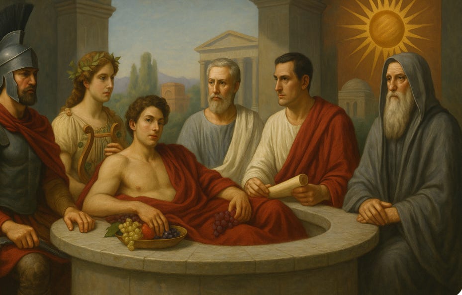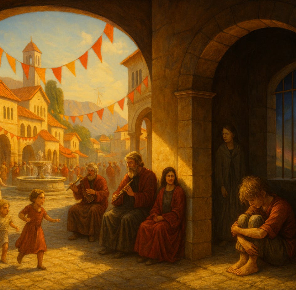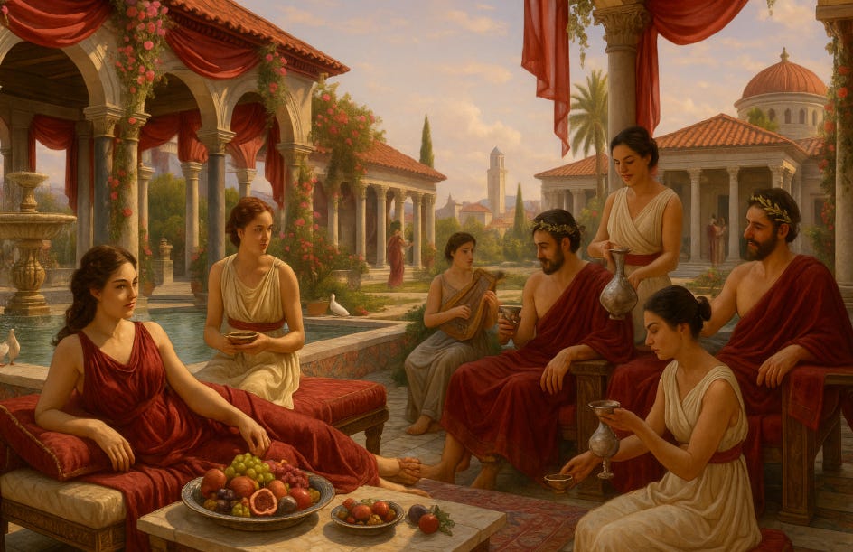 In Sybaris: Here we have the anti-Sparta. A city of luxury, indulgence, and commerce. Think of it as the ideal of pleasure and consumption. Often caricatured as decadent, it nevertheless represents a vision where wealth and abundance are not sins, and where the good life is to be enjoyed rather than merely endured.