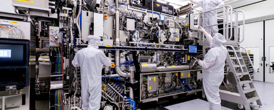 But the packing of more and more smaller and smaller transistors into VLSI chips continued through what I can only call Deep Magic, albeit at a slower pace than with the original “Moore’s Law.” I can read that the ASML TWINSCAN NXE:3400C machine uses extreme ultraviolet light with a wavelength of 13.5 nanometers, and think: that machine is keeping itself aligned and carving 20 million lines with its lasers into the silicon crystal of a 300 millimeter (12-inch) wafer without erring in positioning any one of those lines by as much as one-thirty-thousandth of a human hair. And I cannot grasp how this could possibly be done, regularly and reliably, for a variable cost of only $50 per microprocessor.