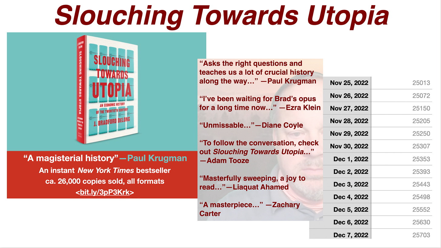 Order Slouching Towards Utopia <bit.ly/3pP3Krk>! (If you have not already done so. If you have already done so, please email me to tell me what I got BigTime wrong in the book.)