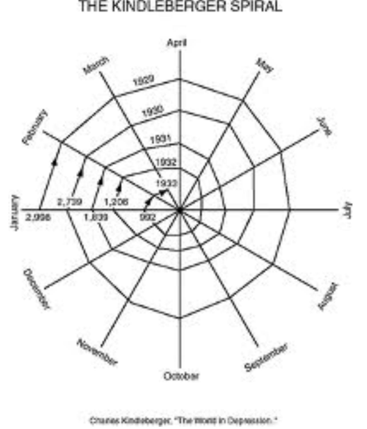 First, panic. Kindleberger argued that panic, defined as sudden overwhelming fear giving rise to extreme behaviour on the part of the affected, is intrinsic in the operation of financial markets. In The World in Depression he gave the best ever “explain-and-illustrate-with-examples” answer to the question of how and why panic occurs and financial markets fall apart. Kindleberger was an early apostate from the efficient-markets school of thought that markets not just get it right but also that they are intrinsically stable. His rival in attempting to explain the Great Depression, Milton Friedman, had famously argued that speculation in financial markets can’t be destabilising because if destabilising speculators drive asset values away from justified, or equilibrium, levels, such speculators will lose money and eventually be driven out of the market.[3]