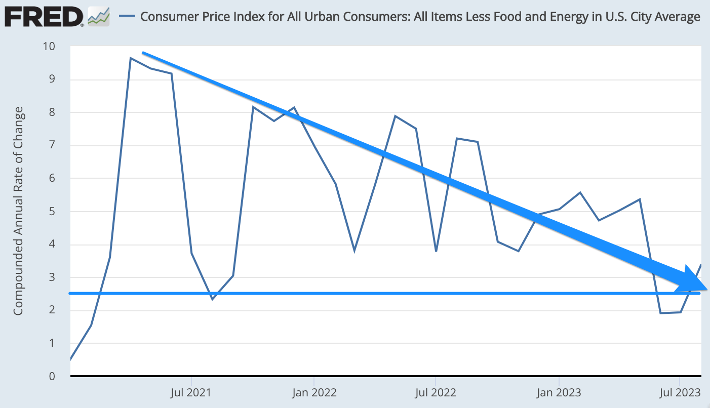 Yet I find few who fear that the Fed has already overdone it, and that there is still substantial additonal restrictionary force in the long-and-variable lag pipeline that will return us to the secular-stagnation zero-lower-bound if the Fed does not start cutting rates soon. And there absence disturbs me, for judging by the core-inflation numbers all of the wheels of the aircraft are already on the ground.