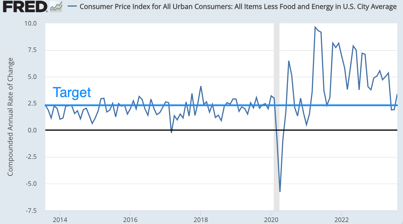 For the last three months core inflation has been at the Federal Reserve’s target.