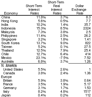 Japan's short-term interest rates continue to be ludicrously low, suggestive of a "liquidity trap" and of a substantial expected future appreciation of the yen.
