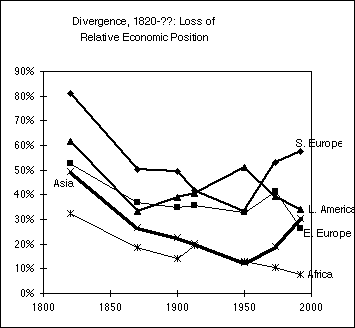 Since 1950 E. Europe and L. America have lost relative ground.