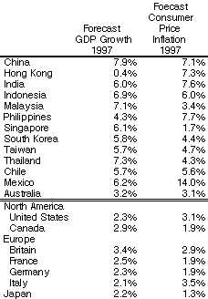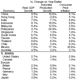 The East Asian economies, with the exception of Hong Kong and its peculiar situation, continue to exhibit six to ten percent per year growth in real GDP.
