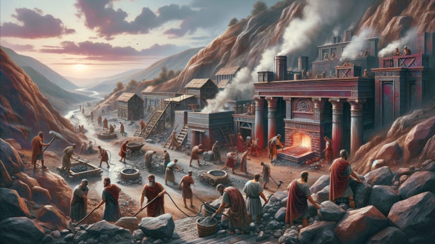 Woodchoppers to bring the firewood, the ovens, and skilled smelters to transform ten tons of rock into five tons of tin.