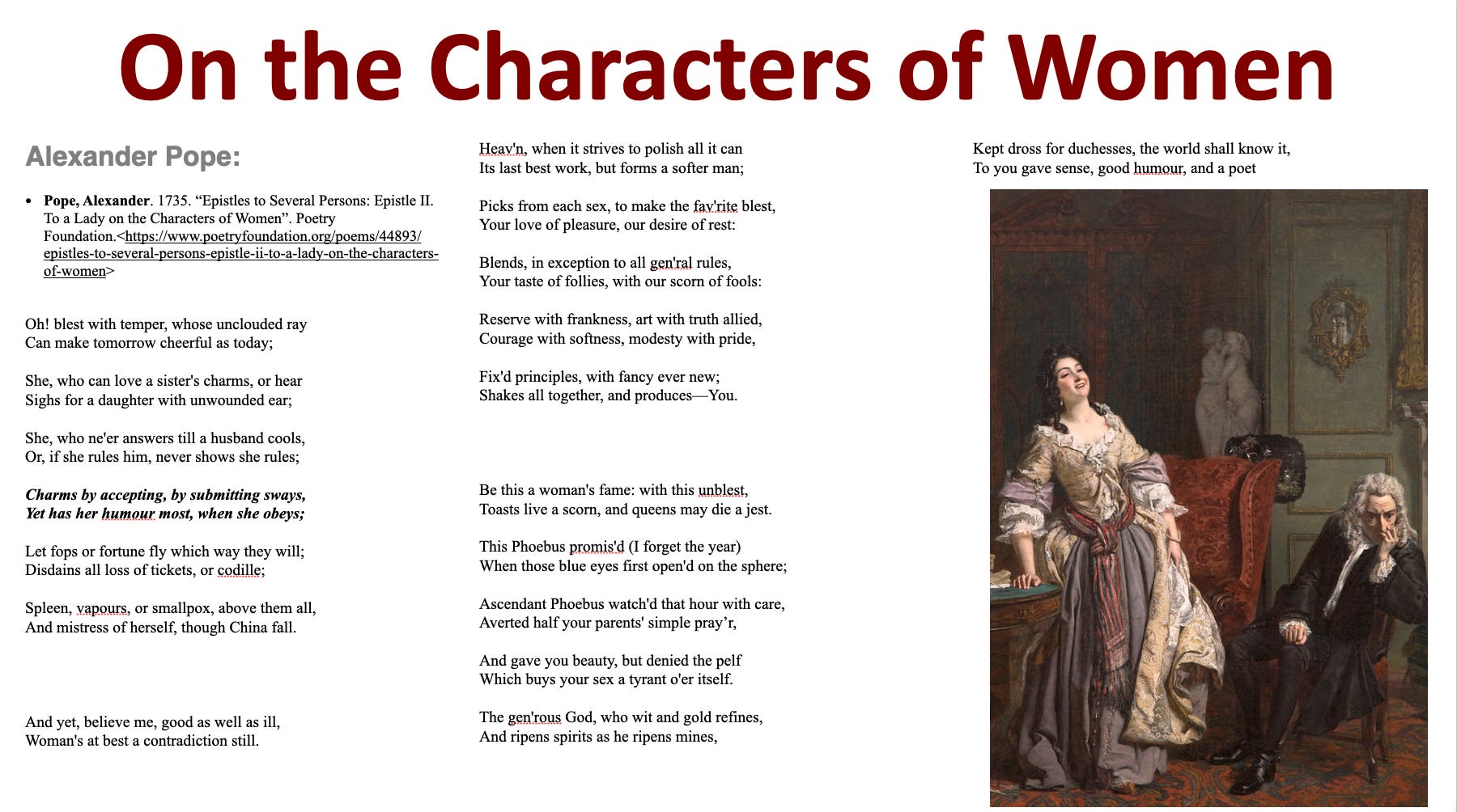 It is, of course, something substantially wrong with the way I am teaching this that feminist concerns are only about a tenth—rather than at least a quarter—of this course, & are, to much too great...
