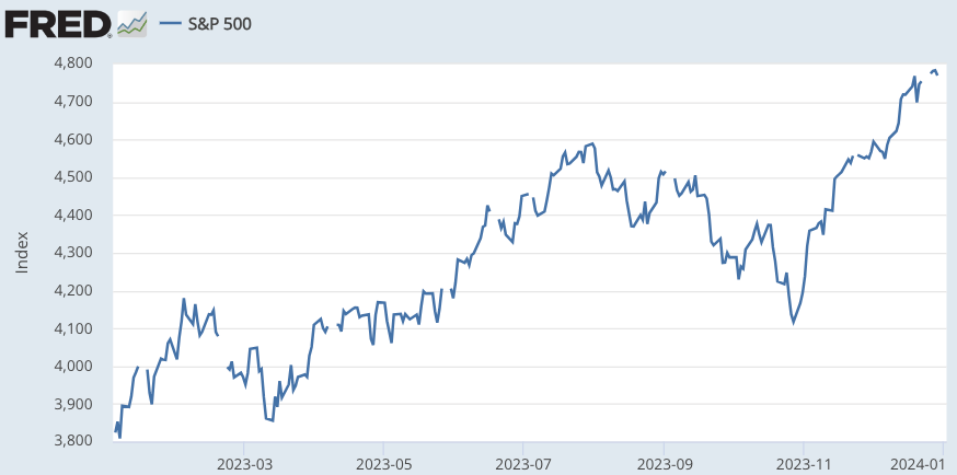 Yet if you poke your head into the financial world, the case for a “gentle economic landing” has led to great joy and much champagne. The stock market over the past year:
