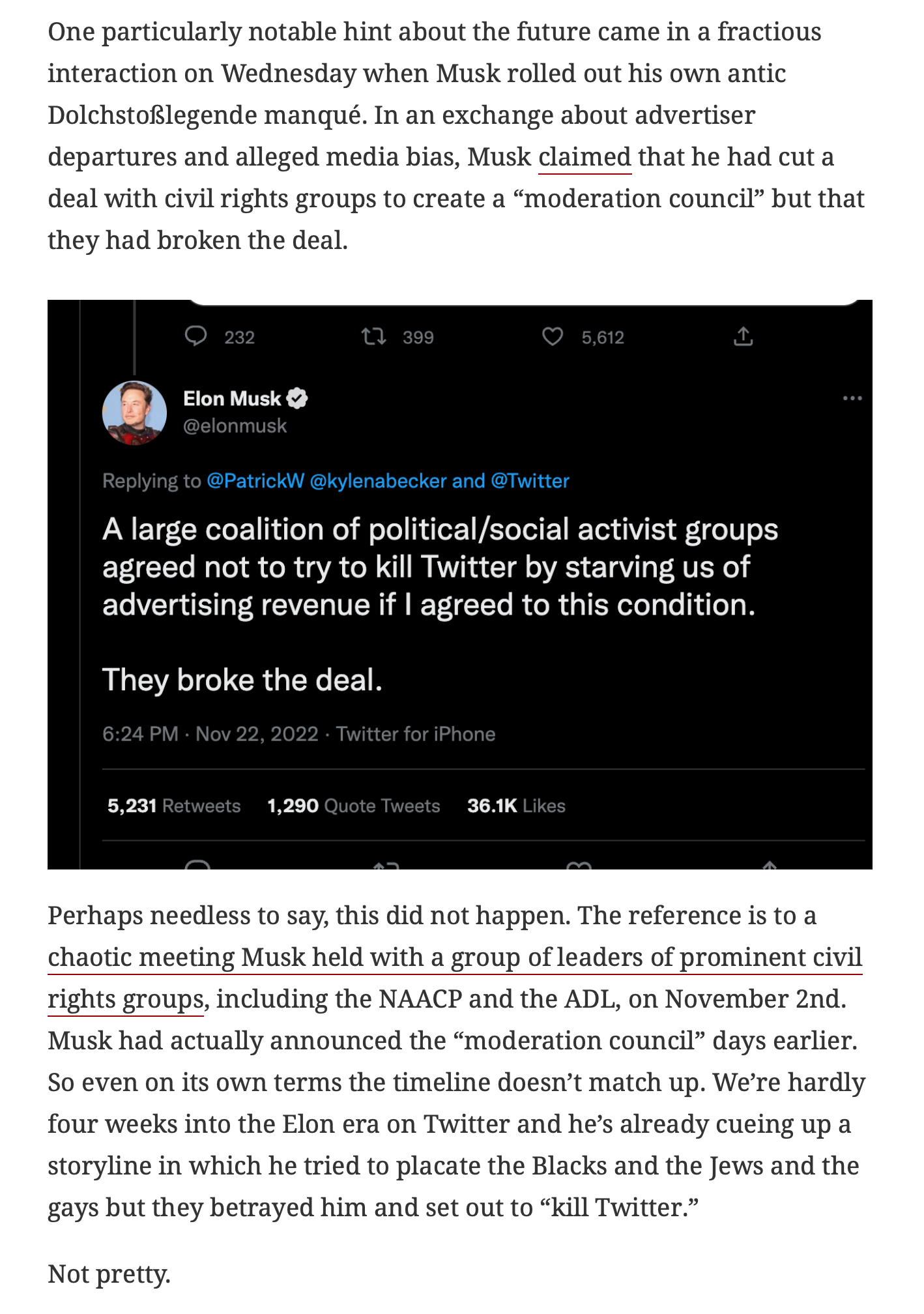 I do not see Musk’s tenure as Twitter paranoid chaos monkey going well at all.