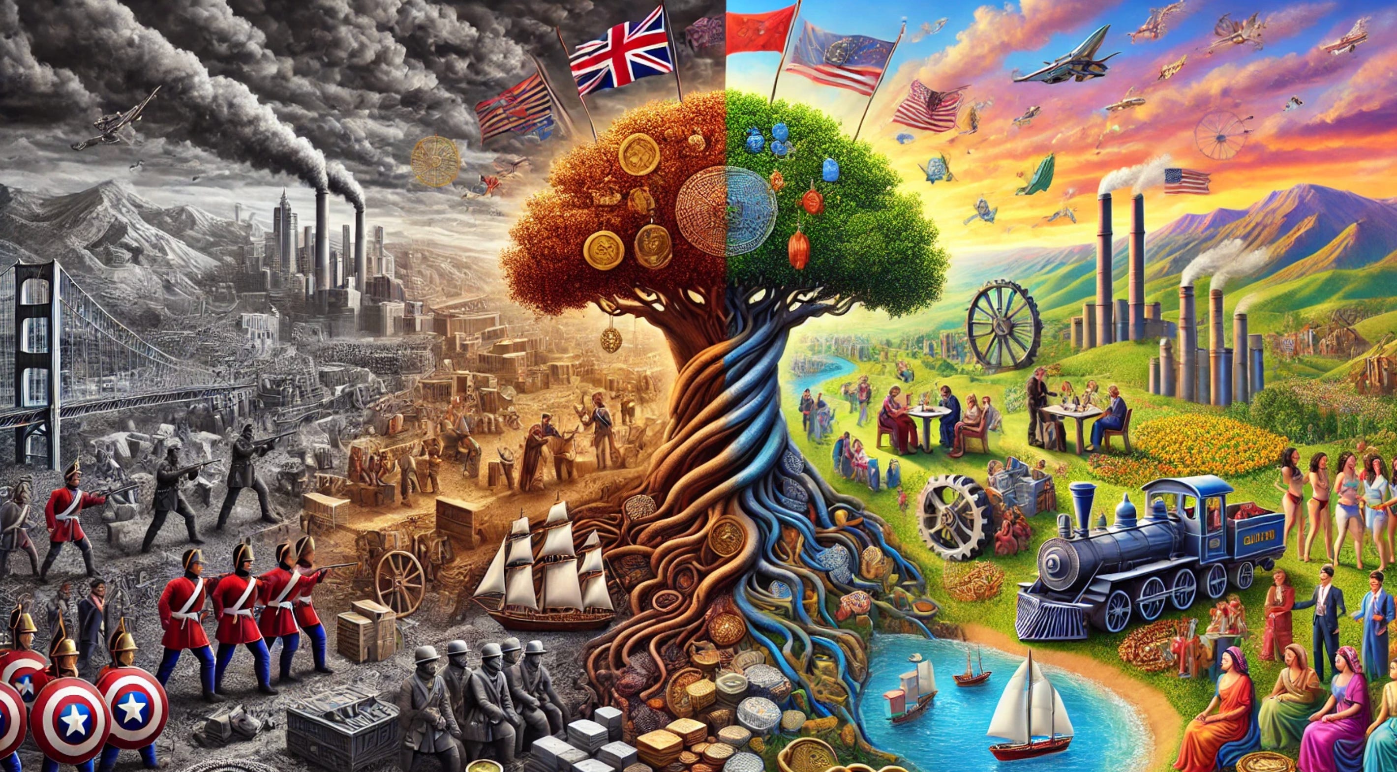First, empires are large-scale societies of domination. Conquest and exploitation are their reasons for being. But with those they bring the flag. And the flag may bring an imperial peace and certainly brings a lot of people into cosmopolitan contact. And from that flows cultural assimilation, cultural exchange, enhanced trade and division of labor, technology transfer, and—perhaps—technological development as well.