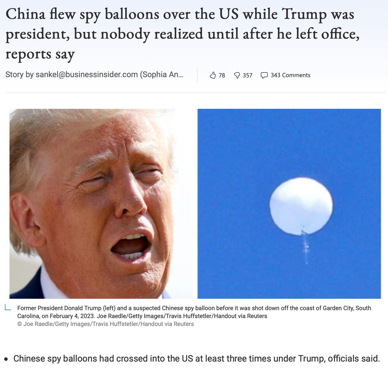Sophia Ankel: China flew spy balloons over the US while Trump was president, but nobody realized until after he left office, reports say…
