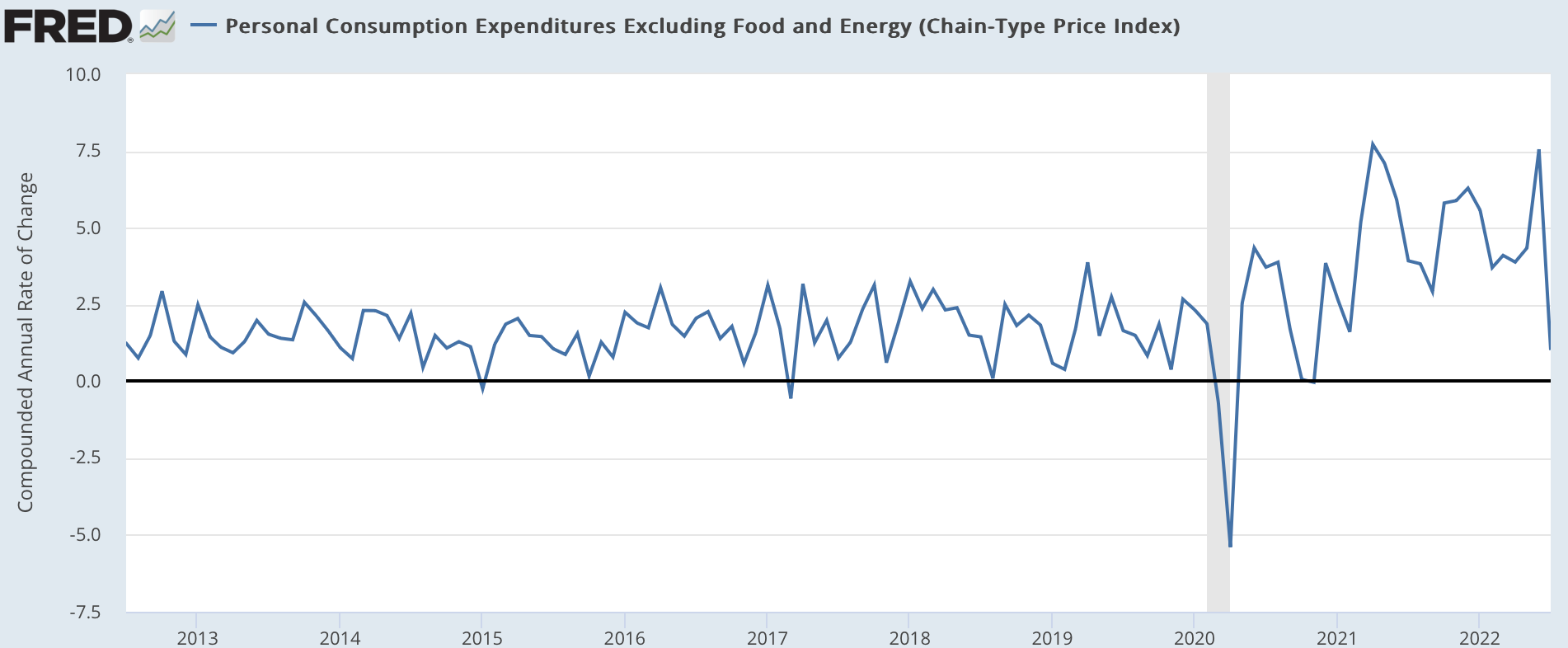 If the Fed overdoes inflation fighting, we might well find ourselves back at the zero lower bound on interest rates—and that would be a hell of a mess, much worse than having Core PCE inflation at 5%/year for an extra year or so.