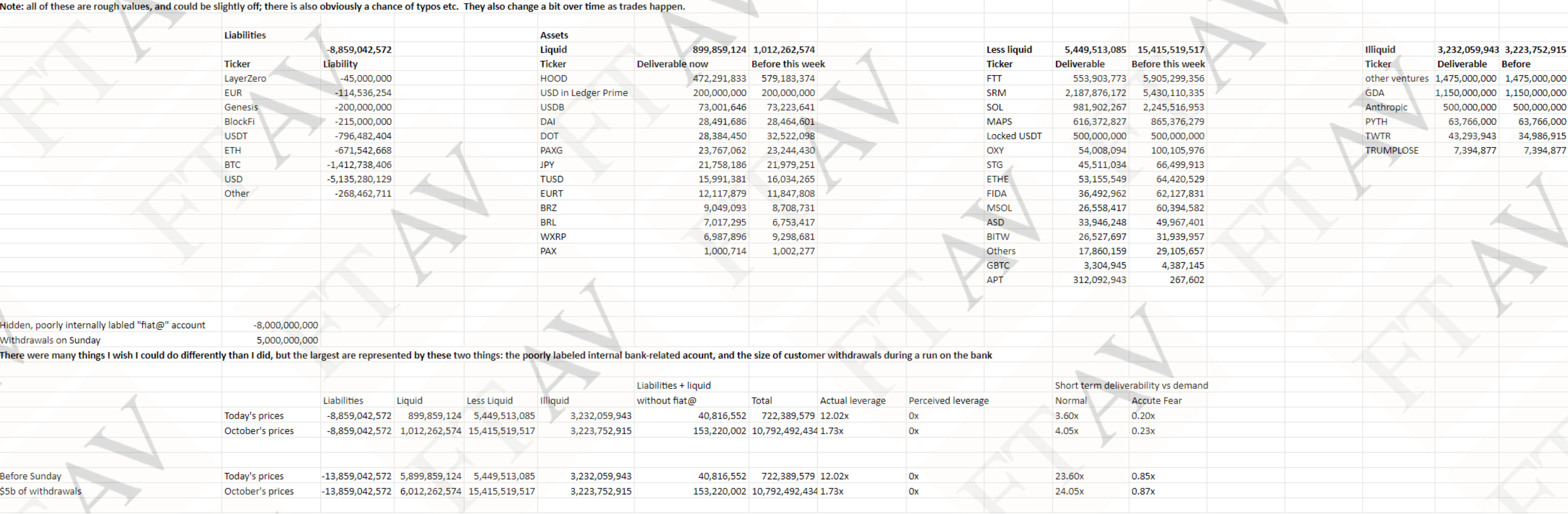 ONE IMAGE: SBF’s FTX Excel Spreadsheet: