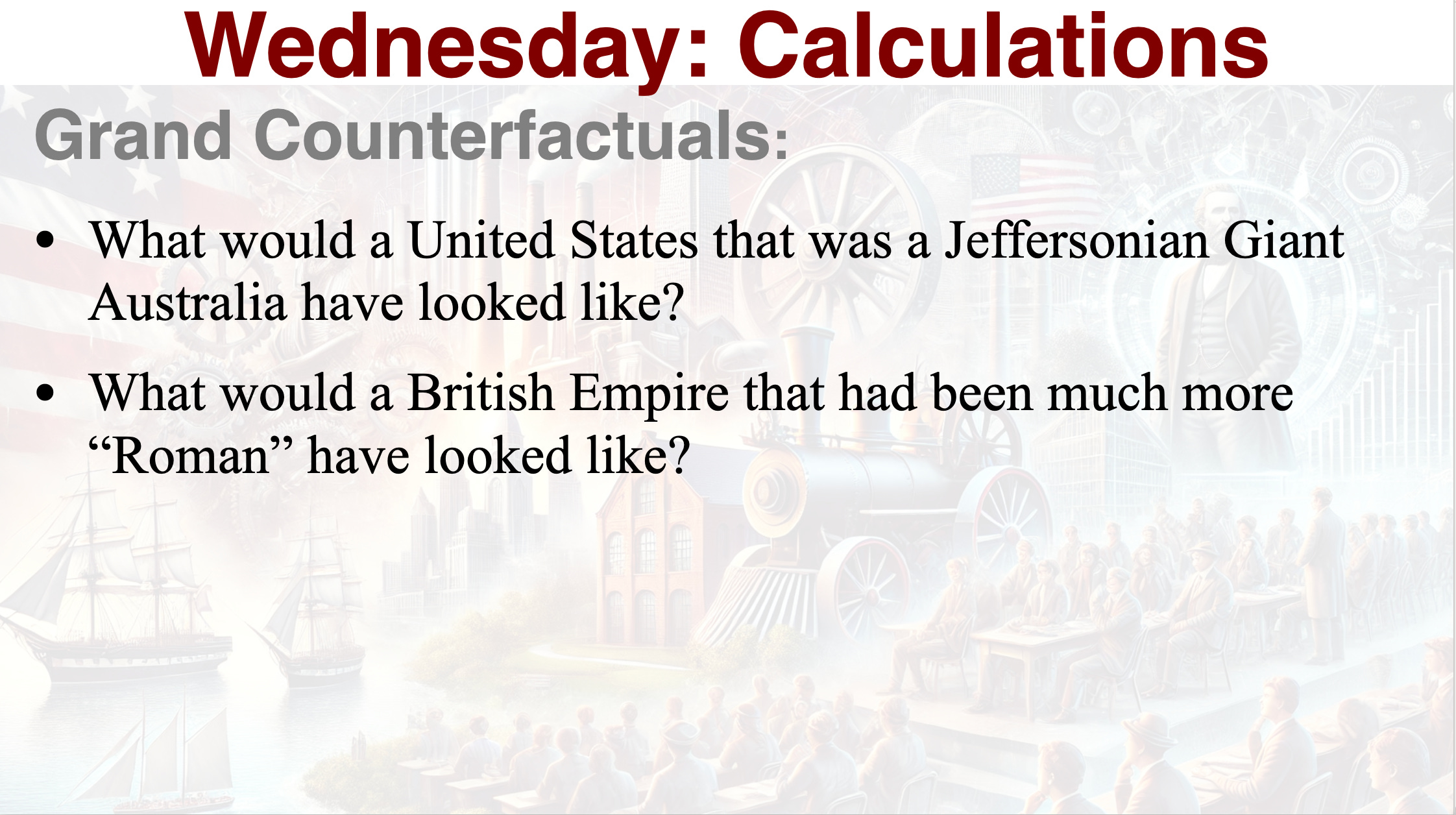 Indeed, there were very powerful—indeed, for most of the period before the Civil War, dominant—political and cultural forces also pushing America toward the development path of its initial-conditions comparative-advantage configuration. Farming, exporting, and rurality as the suitable and meet occupations for a free people is an idea associated with Thomas Jefferson and his political heirs. Commerce and industry and urbanity as a package is an idea associated with Alexander Hamilton and his political heirs. There is a giant Jefferson Memorial in Washington DC, on the Tidal Basin surrounded by cherry trees. There is no giant Hamilton Memorial.