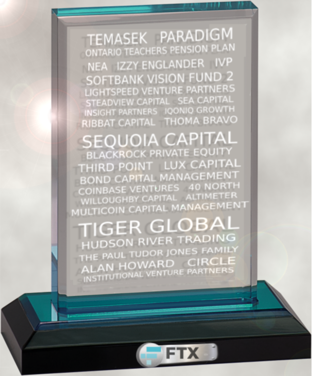 Minted in virtual plastic from 100 per cent blockchain, this precious keepsake offers eternal remembrance to crypto’s biggest scandal of the year so far. Names it records have been carefully hand-selected by artisan paralegals from public documents including FTX’s series B, B1 and C funding round announcements.
