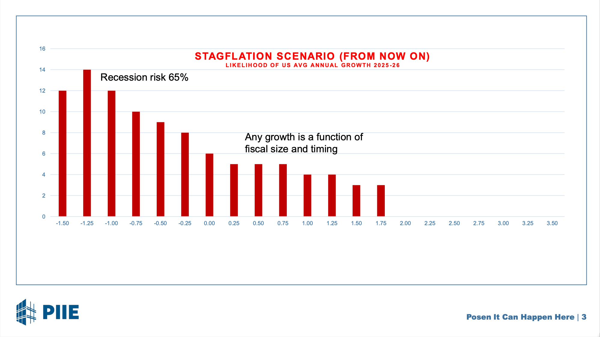 Karen is the only one not making a recession call—and she is on the edge: a 40% chance of recession, and a long and dangerous tail should the policy shocks set a self-sustaining feedback downward spiral into operation.