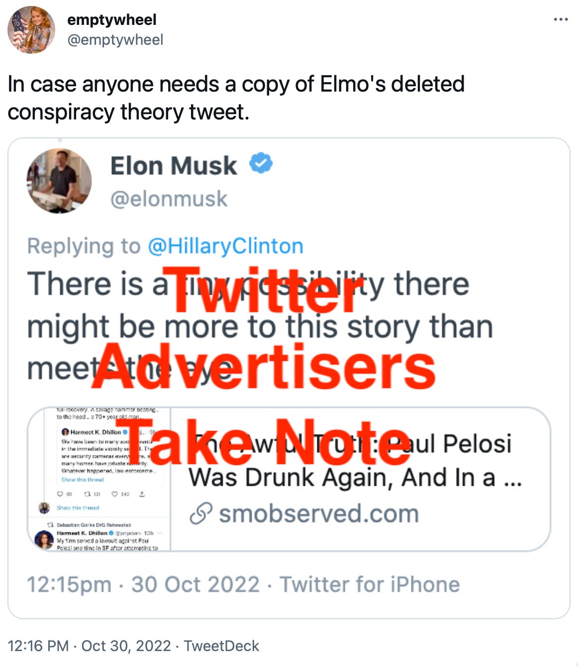 Nilay Patel: Welcome to hell, Elon: ‘You f—-ed up real good, kiddo. Twitter is a disaster clown car company that is successful despite itself, and there is no possible way to grow users and revenue without making a series of enormous compromises that will ultimately destroy your reputation and possibly cause grievous damage to your other companies. I say this with utter confidence because the problems with Twitter are not engineering problems. They are political problems…. The asset is the user base…. The problem when the asset is people is that people are intensely complicated, and trying to regulate how people behave is historically a miserable experience…. You are now the King of Twitter… personally… responsible for everything that happens on Twitter now.… Absolute monarchs usually get murdered when shit goes sideways.