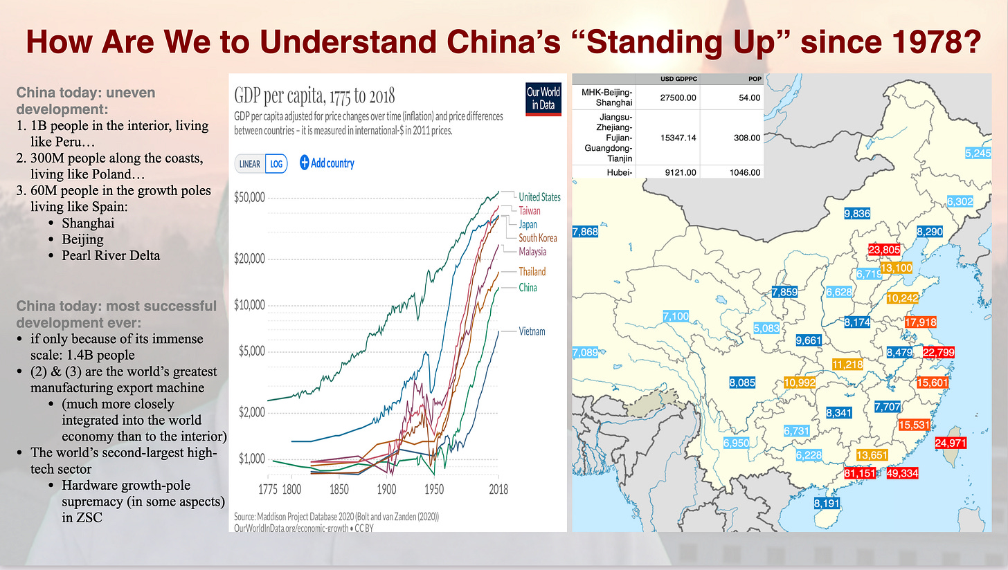 My big problem is that I have been wrong about China for forty years now. I have been—consistently—a believer that China’s current development model (whatever it happened to be at the time) had five, maybe ten years to run. But, I have always believed, the closure of society that the maintenance of party domination requires will break the developmental model. Energies that would otherwise be entrepreneurial will be devoted to ascending within the party, controlling non-party elements, and bribing the party to leave your business alone. And that is when those with entrepreneurial energy do not decide to just leave, and set up shop elsewhere. China’s development model was, after all, only rescued in its first decade by the existence of Hong Kong’s entrepreneurial class, and its willingness to play ball. It was only rescued in its second decade by the existence of Taiwan’s entrepreneurial class, and its willingness to play ball. It was only rescued in its third decade by the willingness of the WTO to play ball with China’s development model. And it has only been rescued in its fourth decade by various low-quality investment bubbles.