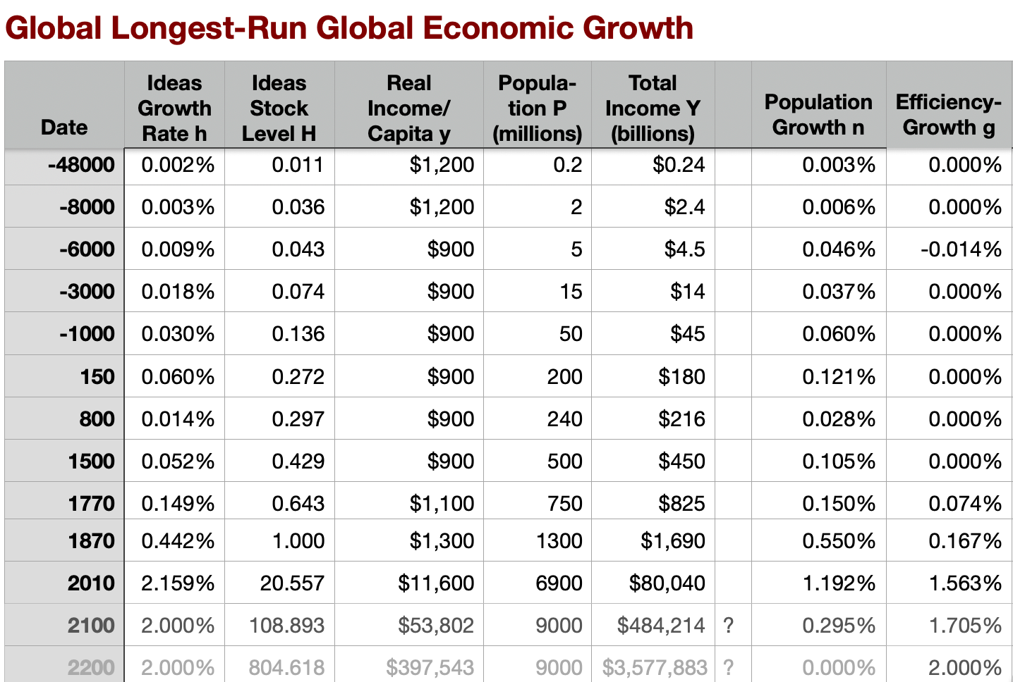 Modern economic growth's arrival was the at least 4.5-fold upward jump in the rate of progress in technology deployed globally—a jump to the 2.1% per year or more rate characteristic of the 1870-2010 long 20th century.