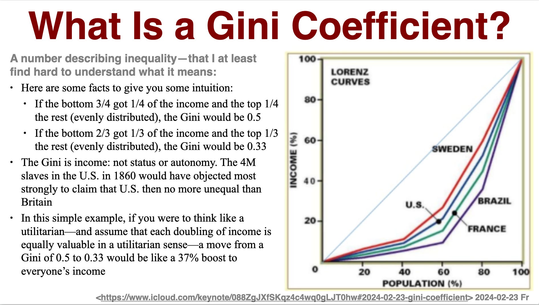 DeLong, J. Bradford. 2024. “What Is a Gini Coefficient?” DeLong Notes & Scratches, February 23. <https://www.icloud.com/keynote/088ZgJXfSKqz4c4wq0gLJT0hw>.