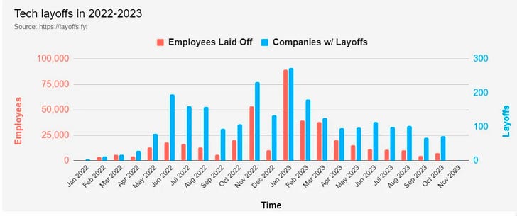 The carnage in medium-big tech companies also changed the game for the startup world as well…. Meanwhile, all this time, another type of tech bust was happening: the crypto crash…. The final piece of the tech bust was the collapse of regional mid-sized banks that served a lot of tech industry people and companies in California. Silicon Valley Bank and First Republic….