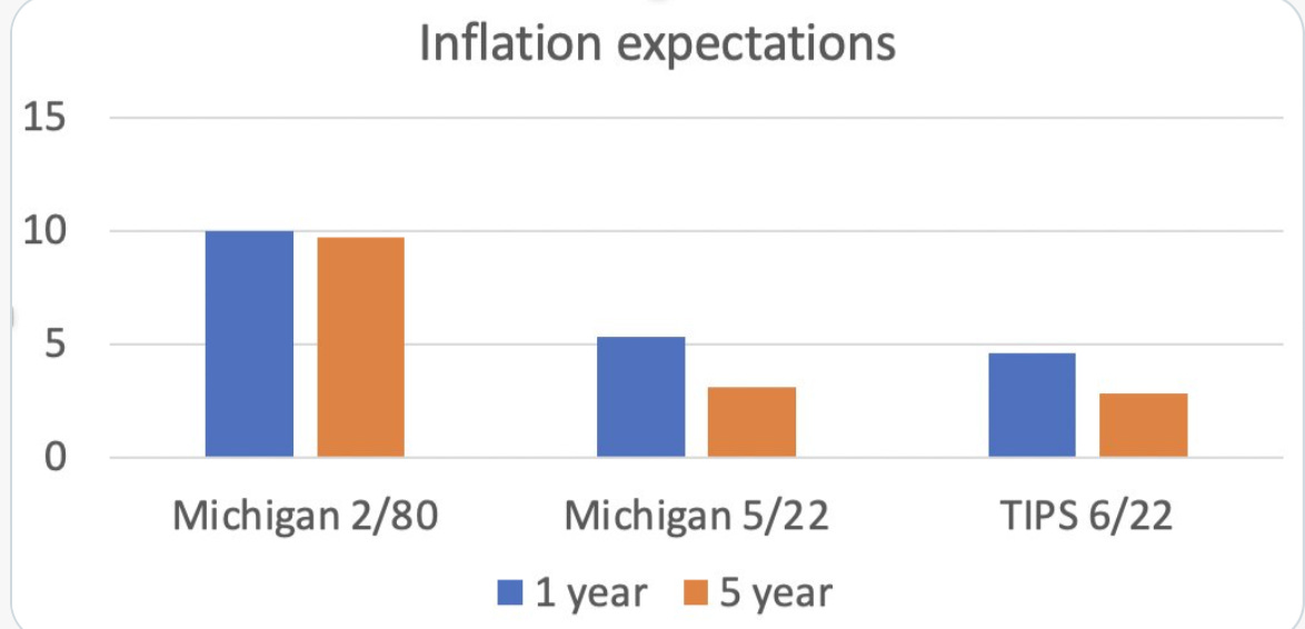 Paul Krugman: ‘Crucial: [I am] not claiming that consumers or markets have special information. The question isn’t whether they’re right; it’s whether inflation has gotten entrenched. All the evidence says no. Now, Goldman Sachs is making a curious argument: That inflation expectations will rise because of “the coming barrage of political advertisements highlighting high inflation ahead of the midterm elections”…. CNN has become the Inflation News Network; and what do you think people see on Fox?… If partisan ads get more people to tell pollsters that they expect permanent high inflation, will this translate into actual wage and price increases? That is, will it affect perceptions that inform economic decisions, as opposed to those that might affect voting? Doubtful. We’ll need to watch this, and maybe discount what the surveys—as opposed to financial markets, where people are putting money on the line—say. Key point: the Fed should not slam the brakes because of phantom inflation fears…