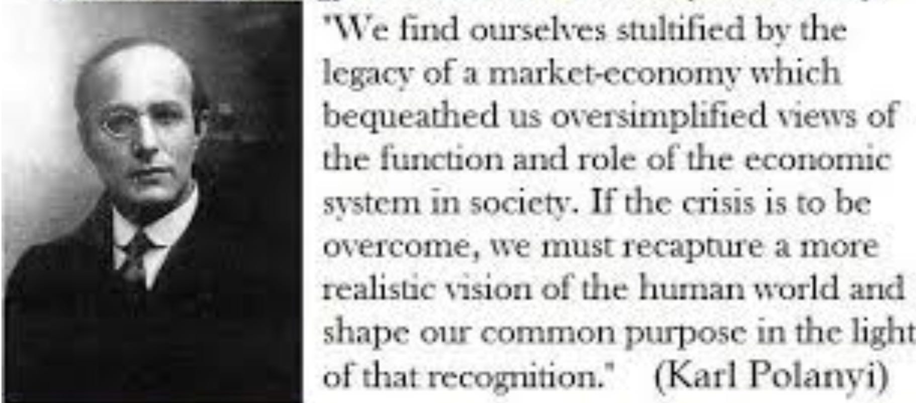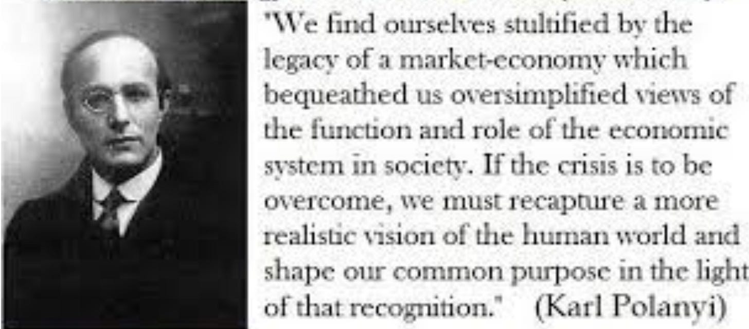 Karl Polanyi said that the "stark utopia" of von Hayek's market was unsustainable: the only rights it recognized were property rights and your own source of social power was your wealth, but people thought that they had other, more important, rights that society needed to vindicate—to economic security, to an income level proportional to what they deserved, that other people should have income levels proportional to what they deserved too, in a connected society that gave them respect and place. Plus that you should have some power in society even if you had no wealth. The watchword had to be: “the market was made for man, not man for the market”.